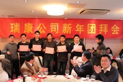 2013年1月底,公司2012年團(tuán)拜聚會(huì)在南京萬(wàn)家歡酒店隆重舉行,全國(guó)各地的瑞康同仁齊聚一堂,總結(jié)了12年的工作成就,共同展望公司的美好未來(lái)。期間,表彰和嘉獎(jiǎng)了公司表現(xiàn)突出的部門(mén)和員工,并頒發(fā)了2011和2012年瑞康初級(jí)工程師證書(shū)。
